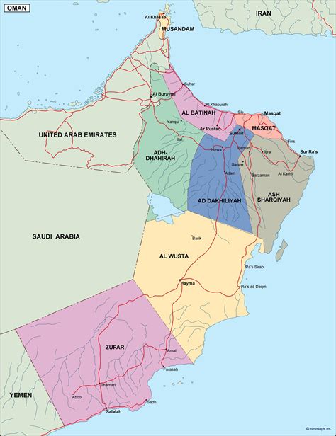 The political map of Oman is divided into 11 governorates, each with its own unique attractions and landmarks. Muscat, the capital city, is located in the Muscat Governorate and is a great starting point for your journey. From there, you can explore the nearby areas, such as Al Batinah North and South.